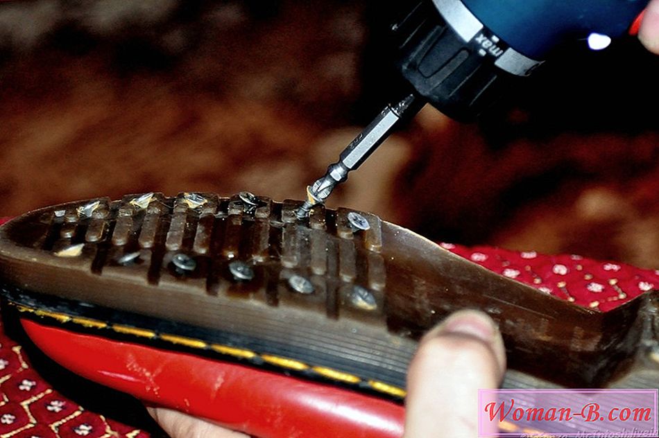 - Вбивание гвоздков или же вкручивание шурупов и саморезов в подошву. При этом слишком длинные металлические элементы обрезаются. Такой метод прекрасно защищает от скольжения на льду подходит только для сапог или же ботинок на толстой подошве. Кроме того, несмотря на то, что ходить зимой станет намного безопасней, в помещении такая обувь будет царапать пол и издавать цокот.