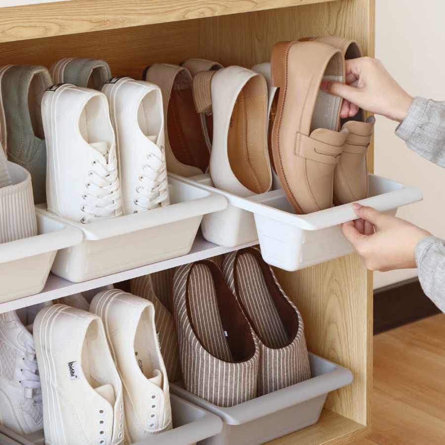 практичный органайзер из подручных материалов (картон, пластик) существенно экономит пространство, содержит вещи в порядке, открывает быстрый доступ. Одежду можно разместить по цвету, размерам, принадлежности. Органайзер представляет собой небольшие ячейки для хранения, в которых удобно помещаются, носки, нижнее белье, футболки. Небольшие яркие наклейки с пометками помогут быстро найти нужный аксессуар. У каждой вещи должно быть свое постоянное место;