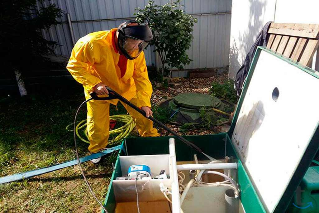 В процессе механической откачки сливной ямы пятую часть ила не убирают — в нем живут и активно размножаются полезные организмы. После выкачки внутренние стенки оборудования, сточные трубы и мембраны чистят вручную или проживают сильным напором воды.