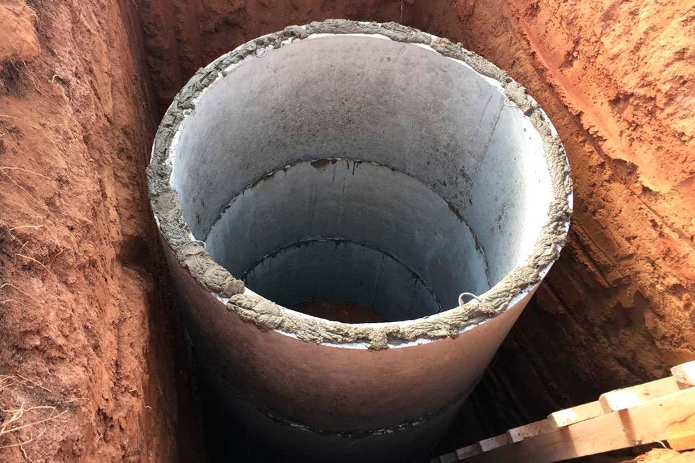 Популярный дачный вариант — два бетонных кольца для канализации. Такой вариант часто предлагают сделать частники, обещая хорошую очистку на выходе и отсутствие необходимости как-либо обслуживать эту конструкцию. Называют они свои творения тоже септиками.