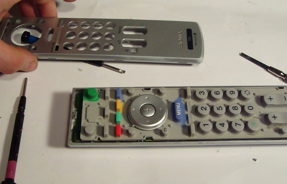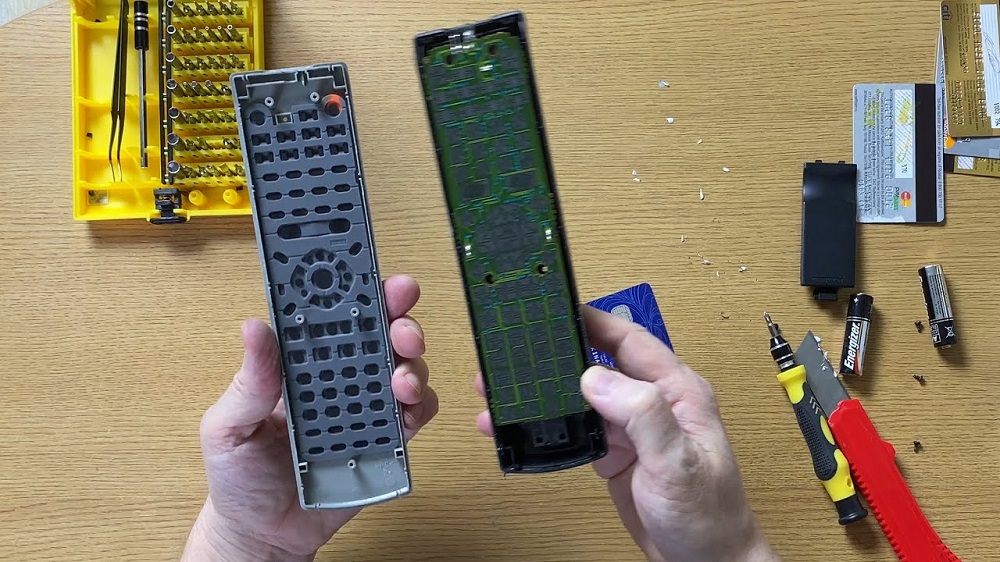 Глубокое очищение пульта потребуется, если обычное удаление загрязнений снаружи не помогло восстановить плавное нажатие кнопок и общую работоспособность прибора. В этом случае устройство разбирают и убирают всю грязь не только снаружи, но и с внутренней стороны. Такой же метод чистки используют для восстановления работоспособности, если на пульт пролили жидкость.