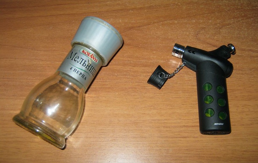 - Много времени. Если времени предостаточно, вставим кипятиться чайник, подготавливаем подходящую по глубине миску и заполняем ее кипятком. Пустую мельничку переворачиваем и окунаем в горячую воду примерно на минуту. Вынимаем меленку, обхватываем крышку махровым полотенцем, чтобы не обжечься, и тянем ее вертикально вверх. Далее стеклянный бутылек и саму пластиковую мельничку промываем водой и оставляем до полного высыхания. Заполняем высохшую емкость любимой приправой и резким движением надеваем крышку обратно до характерного щелчка.