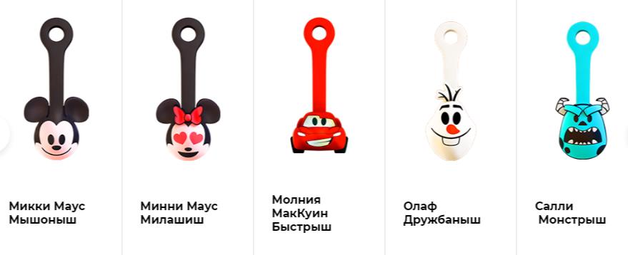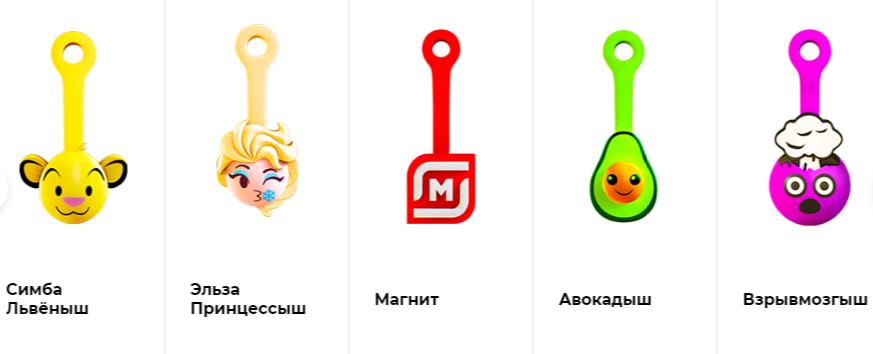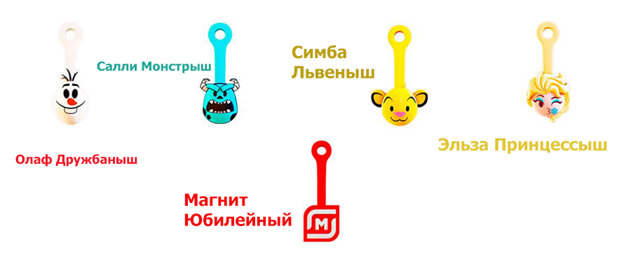 Невероятной популярностью пользовались красочные, яркие и веселые игрушки Магнита, которые раздавали за покупку специальных товаров и определенную сумму чеком. Эти брелки особенно понравились более мелким покупателям, ведь забавные мордашки застежек не могут оставить равнодушным никого.