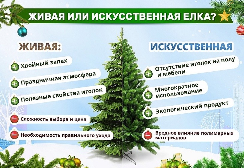 - Не нужно искать место для хранения искусственной елки, так как после праздников, елку утилизируют.