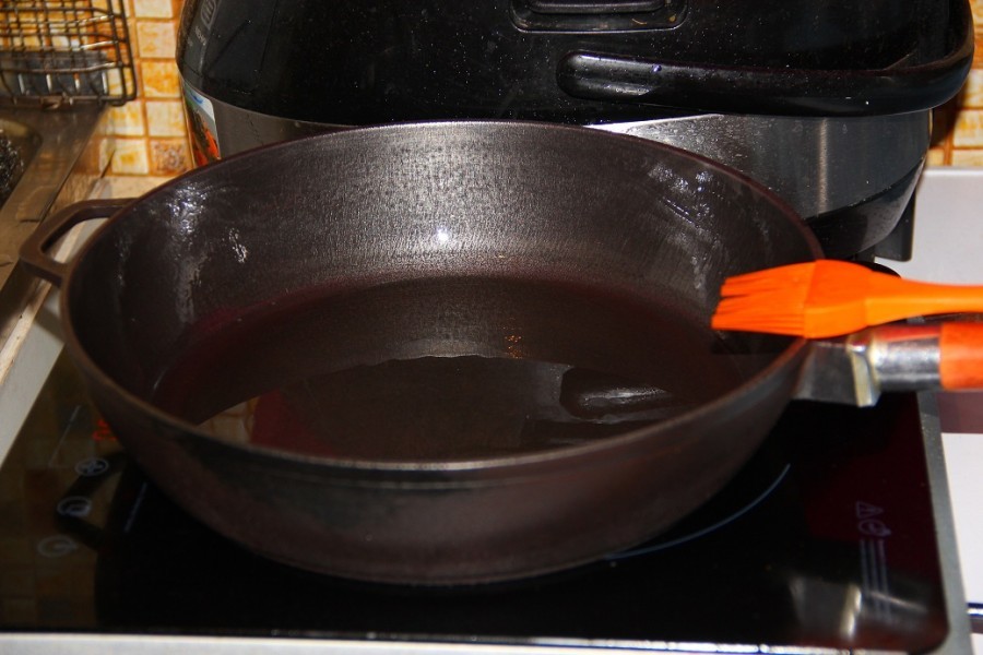 Важно, чтобы масло после прокаливания образовало особую защитную пленку, защищающую поверхность чугунного изделия от ржавчины и частичек пищи.