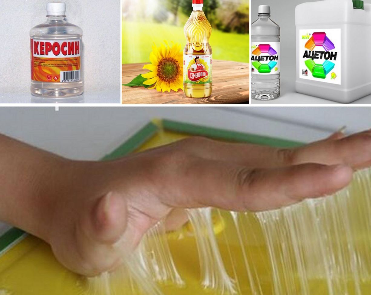 - ацетон и технические растворители – они только размажут липкую массу по стеклу и увеличат площадь загрязнений.