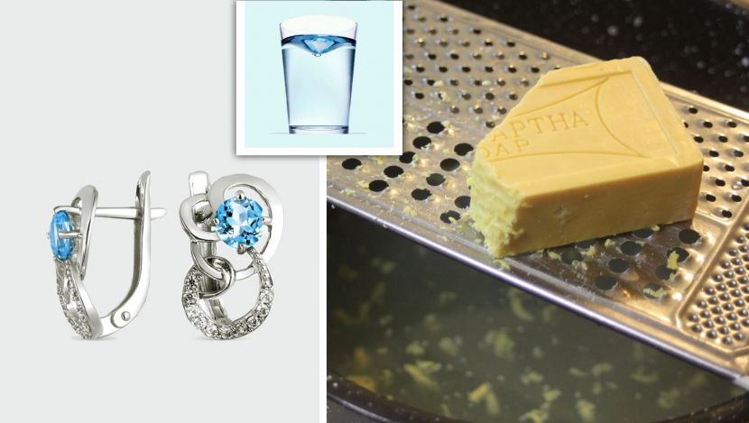 Украшения можно легко почистить в небольшой по размеру емкости: стакане, сотейнике