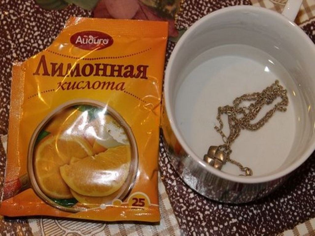 Полезно знать, чем еще помыть золото, чтобы оно заблестело, воспользуйтесь лимонной кислотой. Намочите салфетку водой, добавьте немного кислоты и потрите поверхность благородного металла. Оно засияет как в первый день вашей покупки!