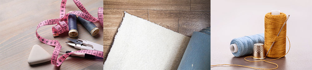 - ткань, декоративная тесьма. Ткань выбирают под цвет ковра или в контраст, обычно из синтетики. Декоративную тесьму нашивают в качестве эстетического дополнения;
