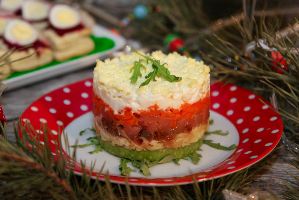 Это довольно популярный и оригинальный салатик. Он очень яркий, что, несомненно, станет украшением вашего праздничного стола.