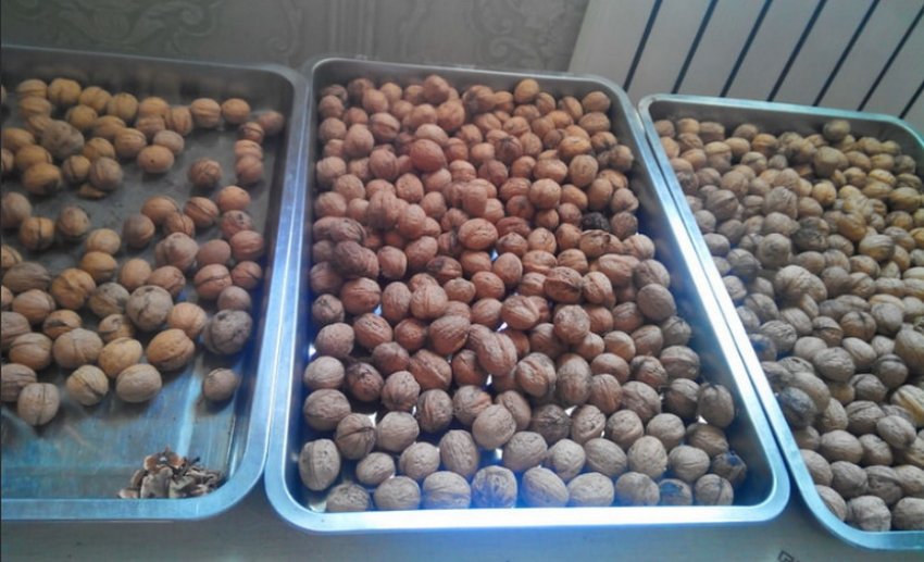 Сушка орехов на свежем воздухе предусматривает постепенное выполнение таких этапов: