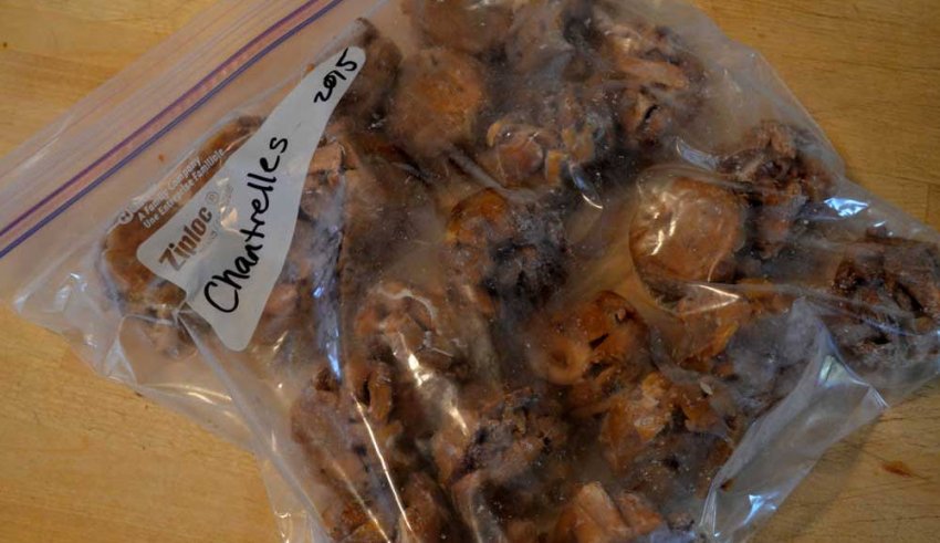 Просушенные целые грибочки складываются в специальный пакет с зажимом, из которого выгоняется воздух. В пакет желательно уложить стикер, с указанием даты изготовления этой заготовки. Ведь, когда морозилка будет полной, сложно будет вспомнить когда именно был заморожен тот или другой пакет.