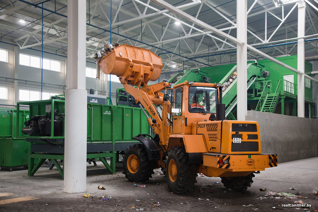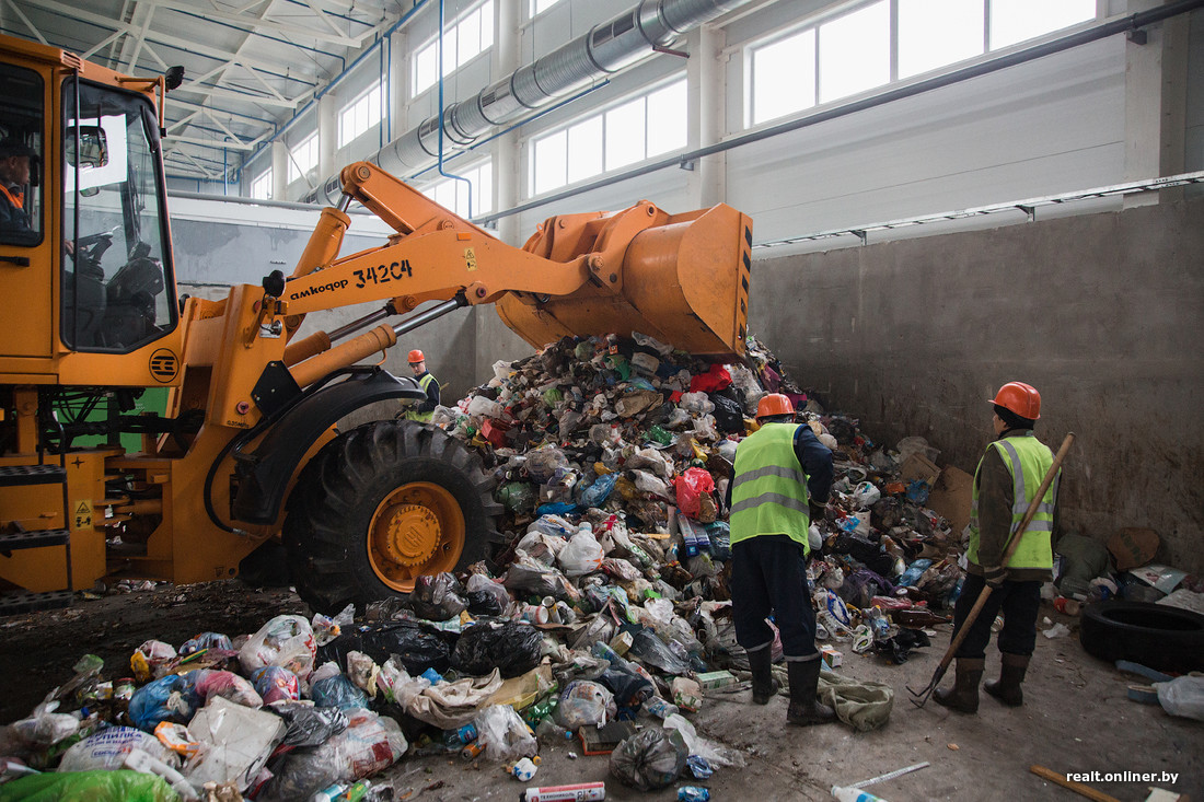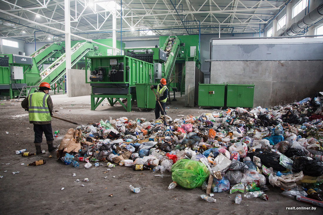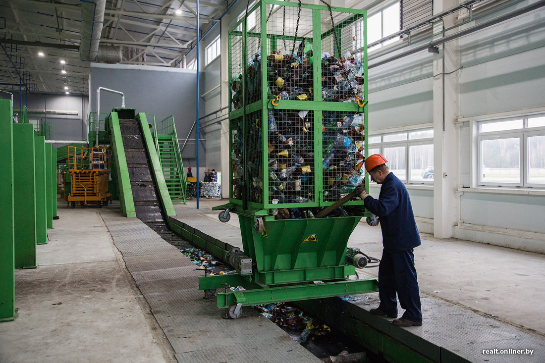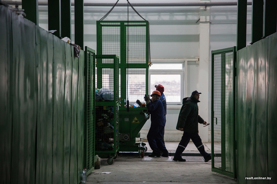Мы захотели посмотреть, куда увозят содержимое контейнеров и что происходит с пластиком дальше. Руководство «Спецкоммунавтотранса» разрешило нам побывать на новом мусоросортировочном заводе. Предприятие официально открылось в этом месяце на полигоне «Тростенецкий», куда сегодня свозят бытовой мусор со всего Минска.