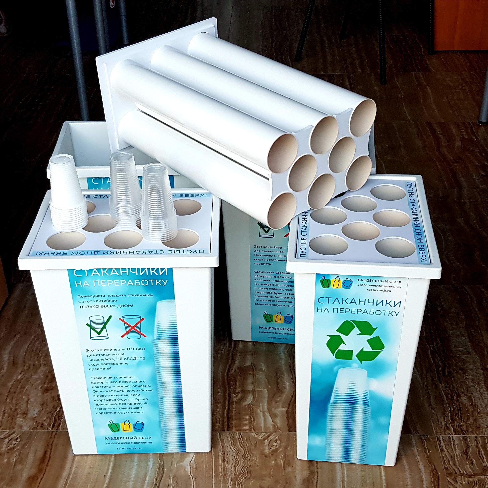 Для офисов, школ, детских садов и любых других учреждений мы разработали специальные удобные контейнеры. Приобрести их можно в нашем Полезном магазине: https://shop.sobirator.ru/katalog/konteynery-dlya-razdelnogo-sbora-vtorsyrya/dlya-plastikovyh-stakanchikov/