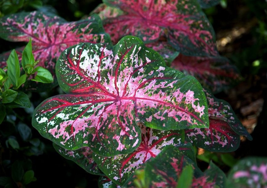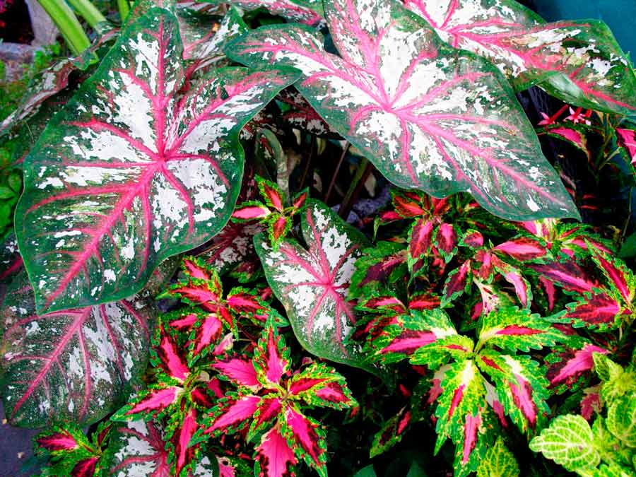 - Caladium bicolor (Aiton) Vent. — Каладиум двухцветный (синонимы Caladium marmoratum (мраморный),Caladium picturatum (цветной),Caladium hortulanum )