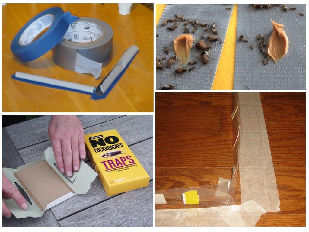 Сперва в коробке нужно сделать множество отверстий-лазеек. После этого на дно уложить сплошной слой липкой ленты или клея. Разложить ароматные продукты по всей площади дна. Поставить закрытую плотно ловушку в доступных для насекомых местах и ждать, пока тараканы учуют вкусный запах.