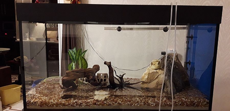 Первые два месяца нельзя менять воду даже в очень маленьких резервуарах: лучше поставить мощный фильтр. Чтобы эффективно тратить свое время и жидкость в аквариуме, лучше обзавестись механическим сифоном и с его помощью одновременно очищать грунт