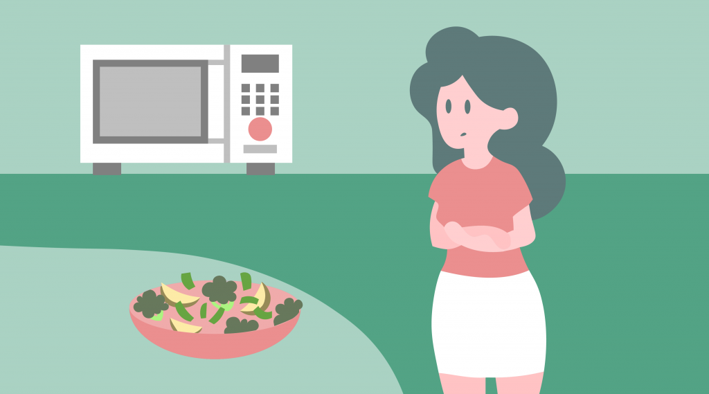 «Готовка в микроволновке вызывает нагрев продукта до ста градусов и более — это очень высокая температура, способная изменить молекулярные связи в продукте, — объясняет Шварц, — такие молекулы иначе взаимодействуют с ДНК и могут вызывать в клетках накопление мутаций, что заканчивается развитием рака». Исследования на животных подтверждают её слова, ждём исследовани й с участием людей.