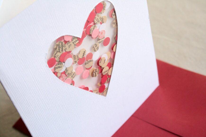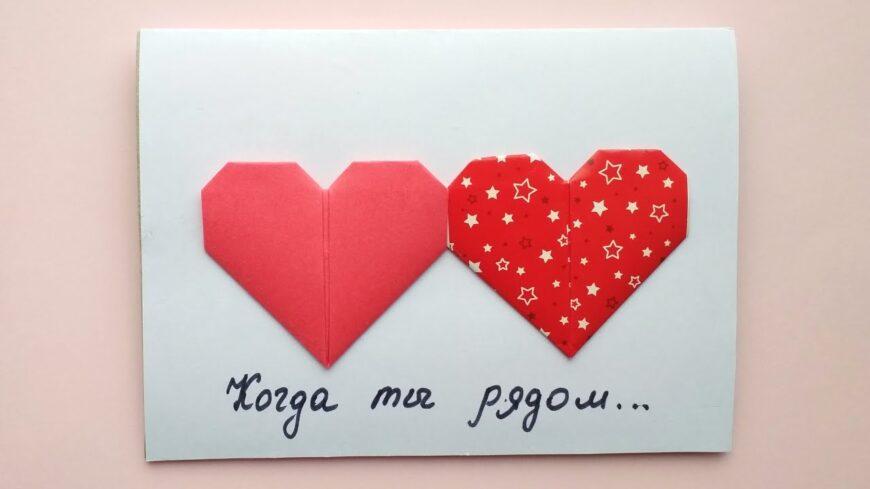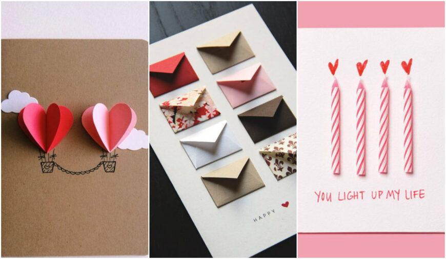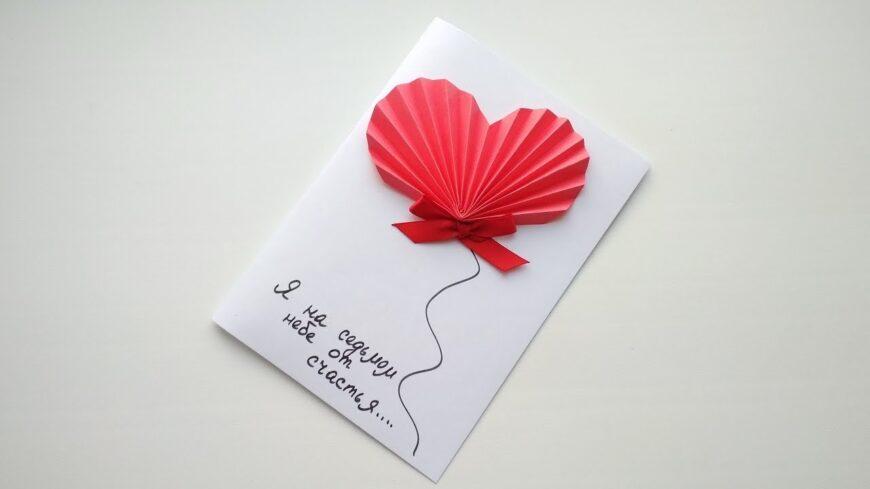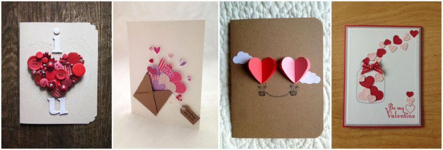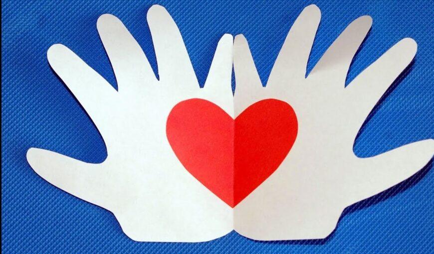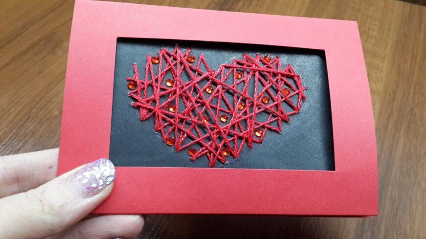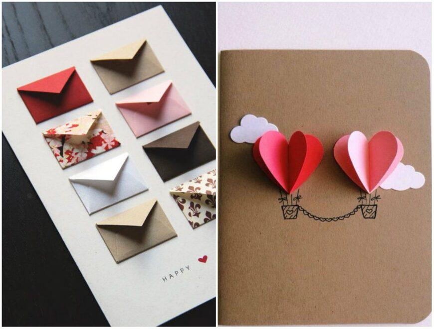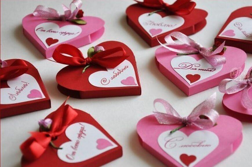 Такой вариант поделки на 14 февраля чаще всего используется детьми в школе и детском саду, потому что это просто, красиво и открыток существует бесконечное множество.