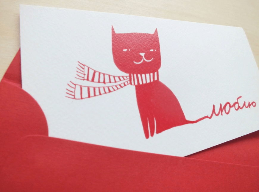 Розовое сердечко приклеивается к красному. Далее из красного и белого картона вырезаются прямоугольники 8х5 сантиметров и 7х4 сантиметров соответственно. На белом картоне можно написать, кому предназначена открытка, например, «Елене». Белый прямоугольник клеится на красный. Заготовка приклеивается на открытку. В левом верхнем углу прямоугольников уместно будет смотреться маленькое красное сердечко.