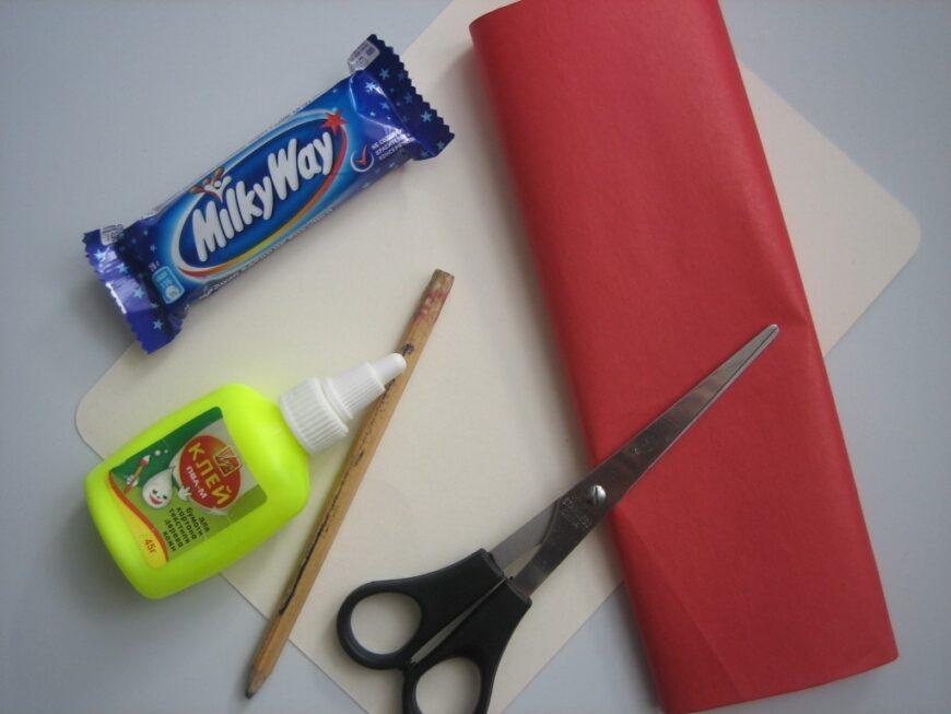Для изготовления праздничного деревца из конфет понадобится инструмент. В перечень входят: