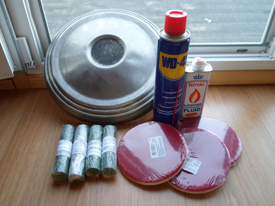 Чтобы не появились царапины на поверхности возьмите кусочек ветоши и вымочите его бензином.