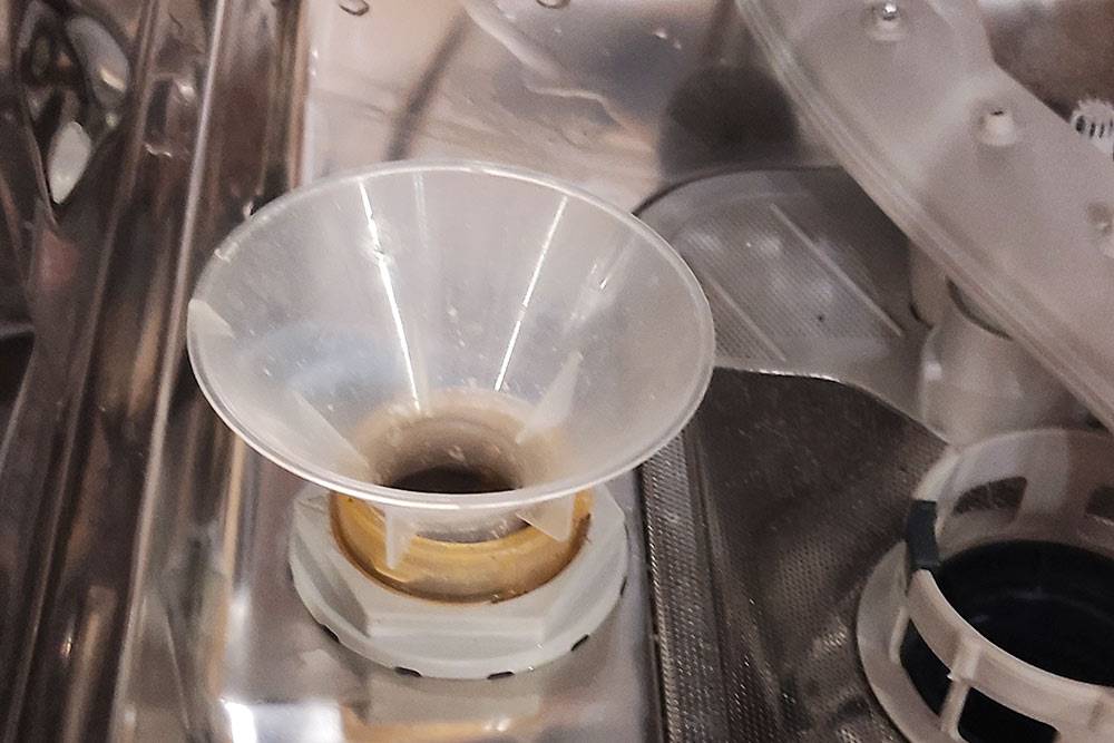 Специальная воронка, через нее нужно засыпать соль в отсек