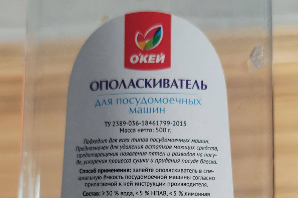Обычный состав ополаскивателя из известной торговой сети