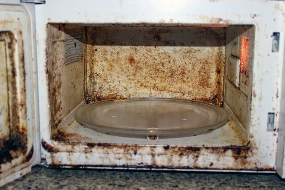 Вы можете поставить глубокую тарелку с водой на несколько минут, чтобы вода испарилась. Так засохшая грязь «отпариться». Или же воспользуйтесь бытовыми парогенераторами для чистки поверхности микроволновки. В запущенных случаях этого оказывается недостаточно и приходится применять бытовую химию или подручные средства. Очистить СВЧ-печь можно содой, соком лимона, лимонной кислотой, уксусом и цитрусовыми корками