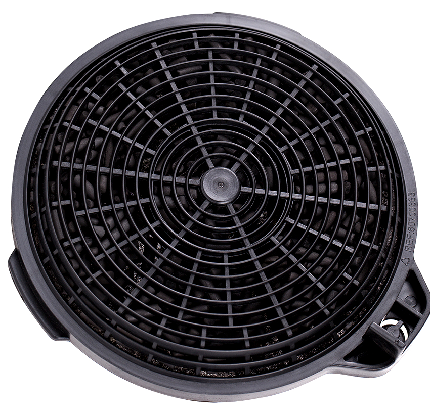 В угольном фильтрующем картридже действующим компонентом являются мелкие гранулы активированного угля либо вовсе угольный порошок, главная особенность которого – способность поглощать и удерживать разнообразные примеси, содержащиеся во втянутом воздухе. При активном использовании фильтр на вытяжке рекомендуют менять не реже одного раза в 4 месяца. Установка очищающего элемента происходит сразу за жироулавливающей сеткой, которая предохраняет его от попадания крупных жировых частиц, способных нарушить работу угольного сорбента.