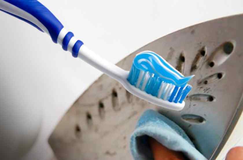 - Зубная паста. Это средство часто применяется для очищения разных поверхностей. Поэтому в домашних условиях пастой можно также почистить подошву утюга, без вреда для тефлонового покрытия: