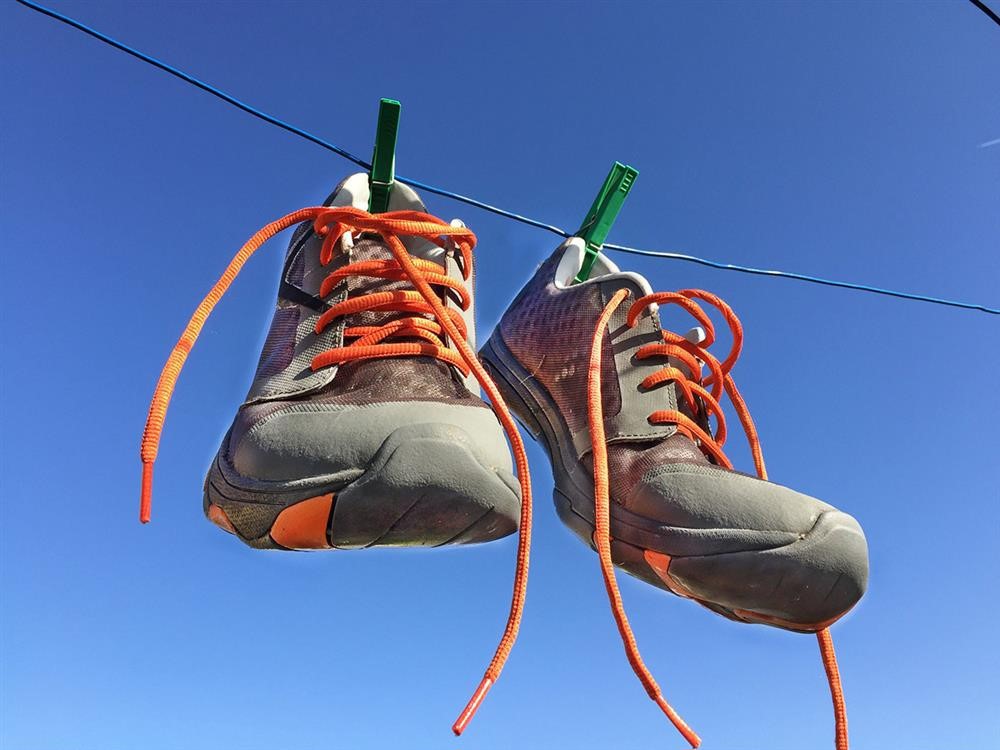 - Если качество обуви позволяет, можно промыть ее мыльным раствором (теплым), после — протереть уксусом и промыть еще раз. Уже чистую обувь – как следует просушить и проветрить.