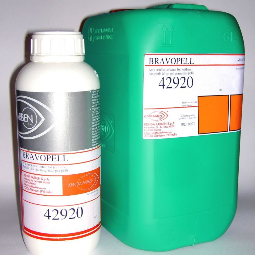 BRAVOPELL — мягчитель для кожи. Используется при растяжке обуви Делает кожу мягкой, облегчает удаление морщин. Используется в различных стадиях обработки: супинирование, затяжка, глажение сшитых мокасинов. Наносится губкой или распылителем, смягчая верх обуви в нужном месте. Действие мягчителя продолжительно. Не пачкается. Не использовать на жированных кожах и на тех частях верха, которые предназначены для склеивания.