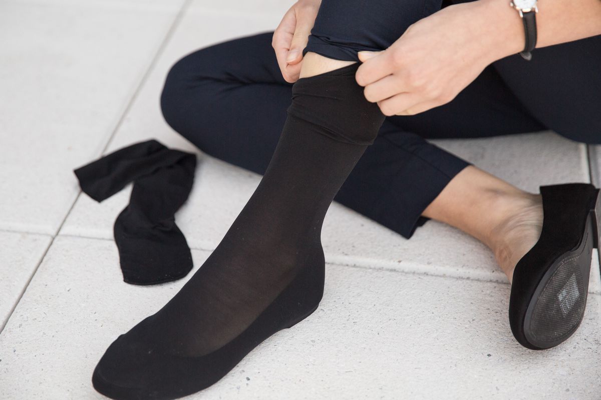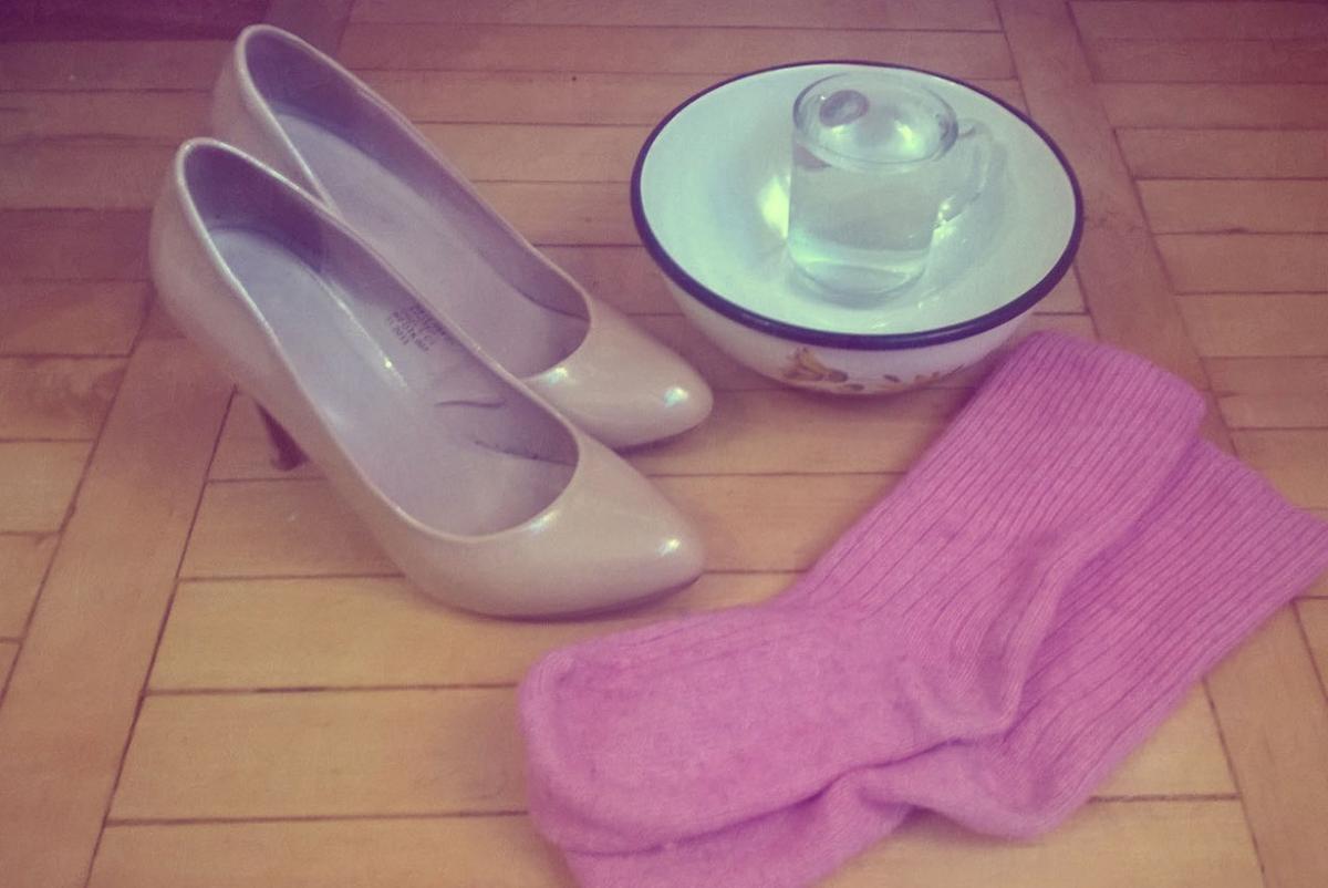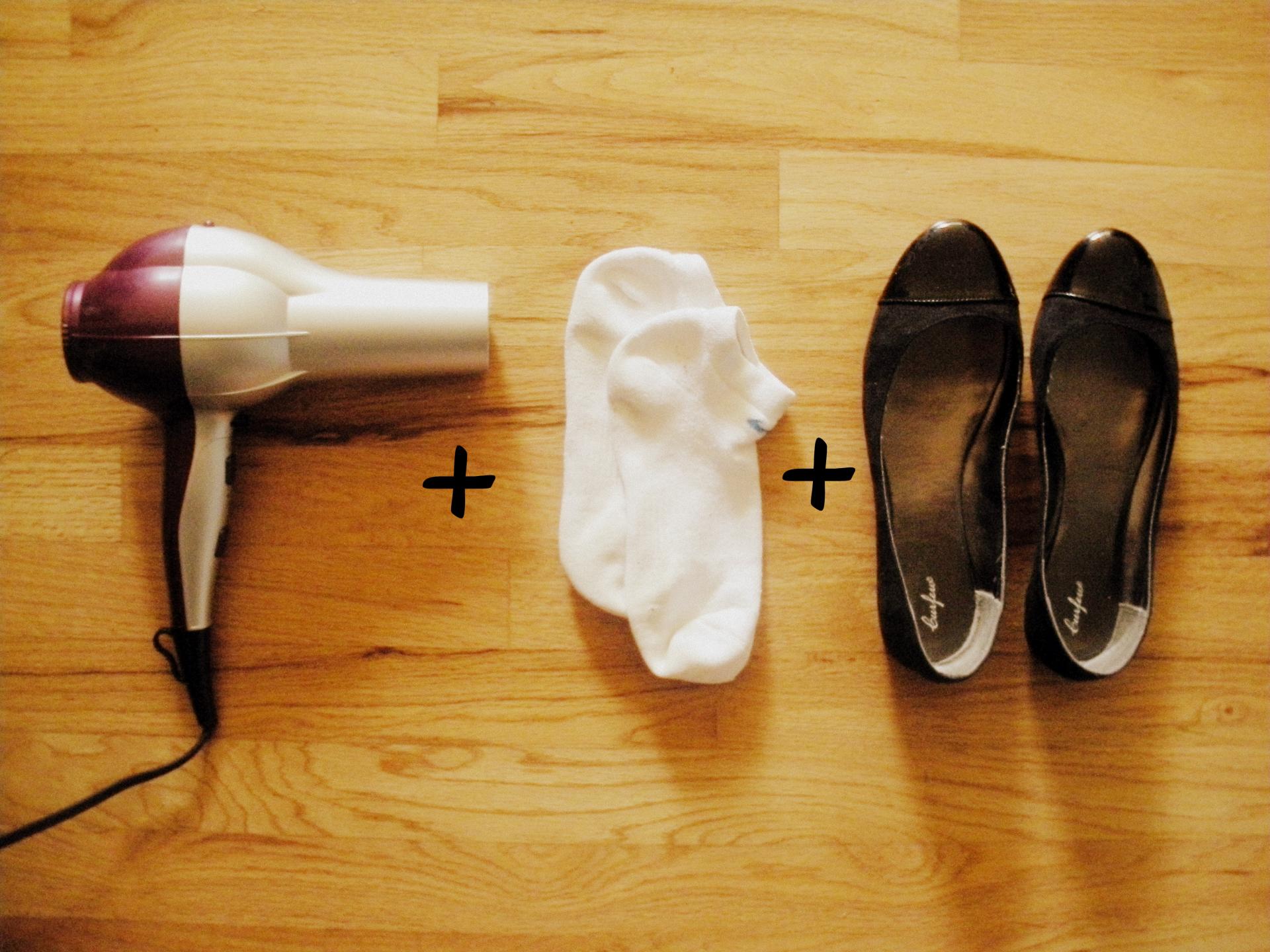 - Для разноски туфель больше подходит, ходить в них в мокрых хлопковых носках. Берете хлопковые носочки, мочите их в воде, надеваете на ноги, а затем надеваете туфли и ходите в них пока носки не высохнут.