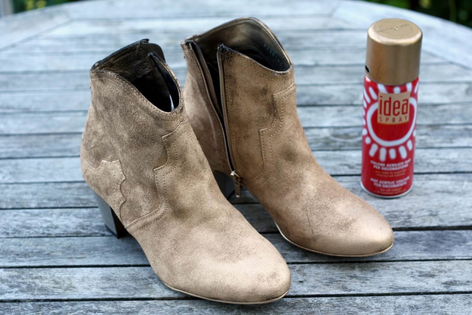 - Для этого струю с краской желательно не проводить по уже нанесенному цвету и стараться держать баллончик на одном расстоянии от обуви. Лоснящиеся от длительного ношения места окрашиваются кисточкой – так они лучше пропитываются и не отличаются от целой замши.