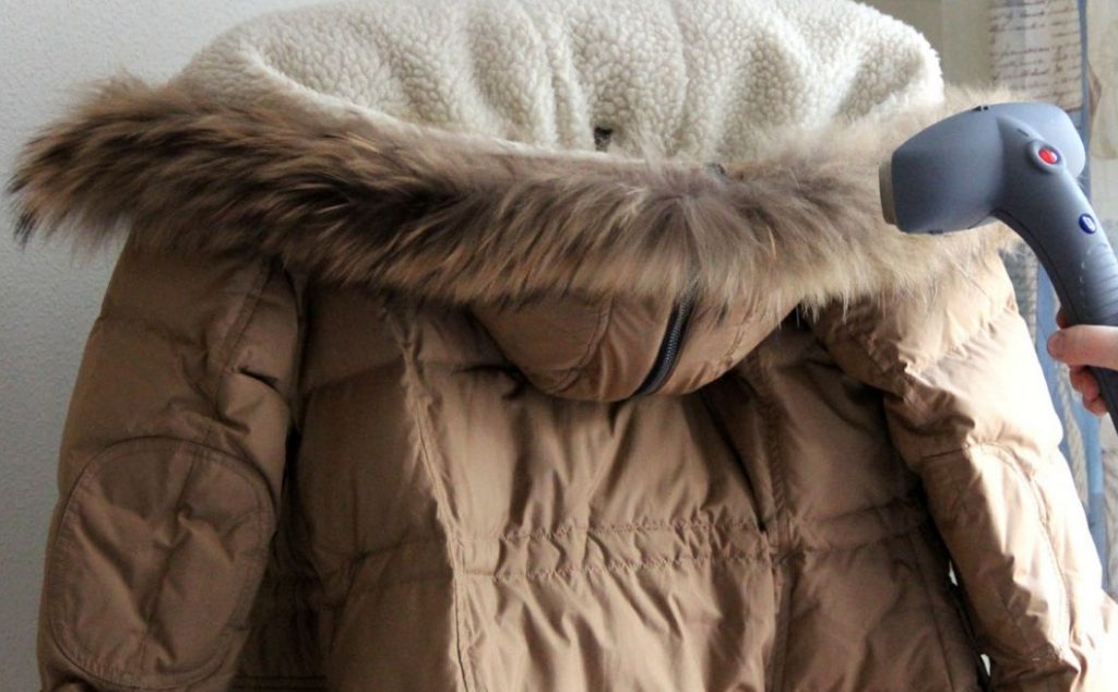 Если пух не сильно сбился в комки, можно воспользоваться парогенератором. Развесьте пуховик на плотной вешалке, и проведите щеткой сверху вниз. Держать ее нужно на расстоянии 15 см от куртки. После обработки паром протрите пуховик мягкой сухой тряпкой.