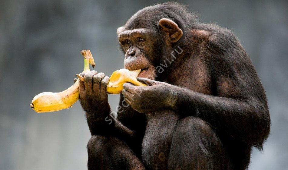 - Шимпанзе и гориллы сначала раскрывают соцветие – едят банан, держа его за черенок, как мороженое на палочке;