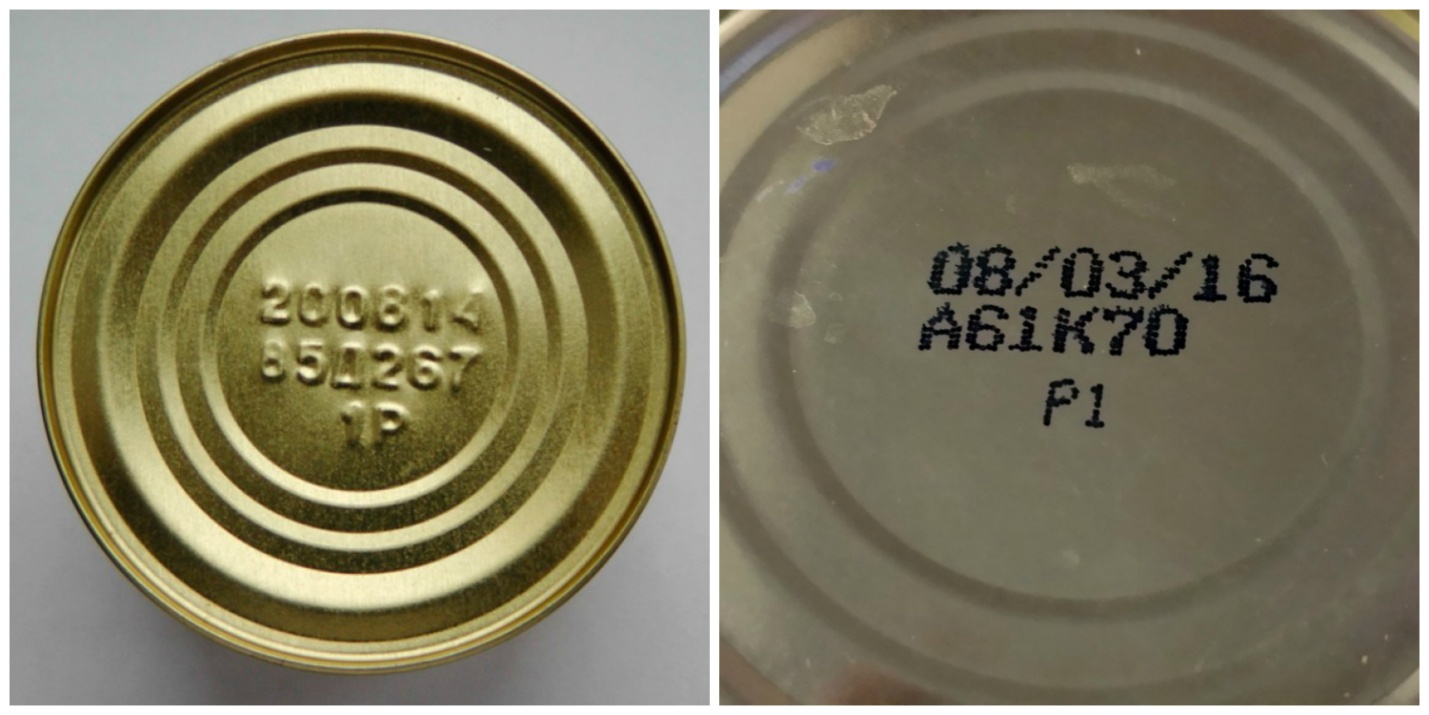 Часто заводы-изготовители размещают информацию о сроках годности продукта на крышке, нанося их методом литографии или специальной краской. Делается это на поверхности, ограниченной первым бомбажным кольцом, а на бумажной этикетке пишется специальное указание для потребителя.