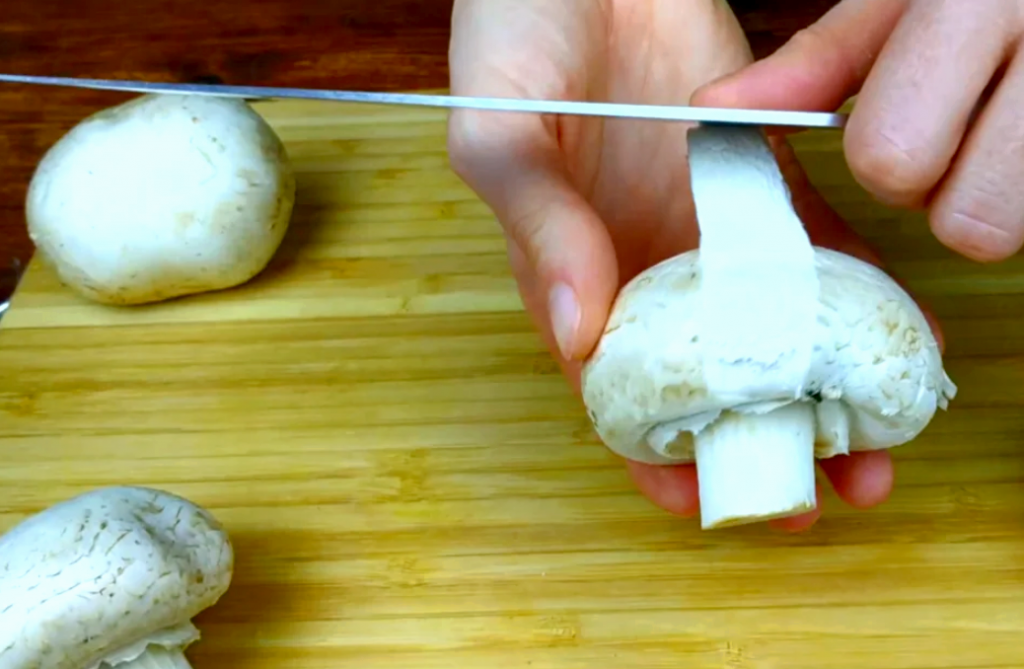 Для этого шампиньоны сначала тщательно очищают, моют, обсушивают и срезают на них все потемневшие и поврежденные части. Для чистки рекомендуется взять нож с тонким, острым лезвием, чтобы было удобно очищать шляпки изнутри. Также нужно заранее подготовить щетку и влажные салфетки. Чтобы уничтожить патогенные микроорганизмы на свежем продукте, их на несколько секунд отправляют в хорошо разогретую духовку.