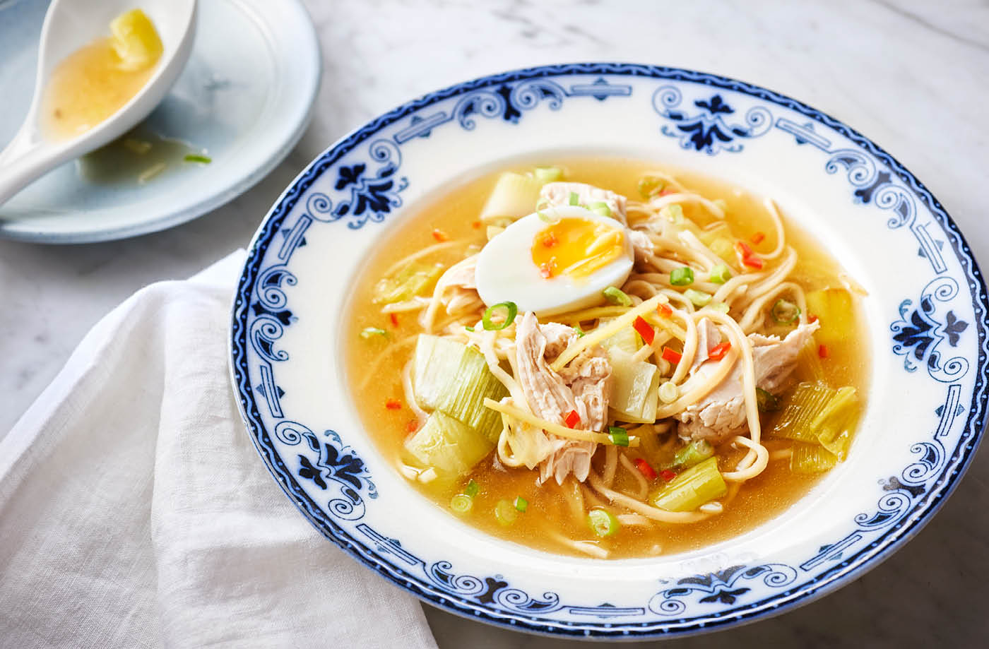 Грузинский куриный суп интересен тем, что в нем нет овощной гущи. Используется только зажарка из лука, а вот картофель и морковь не добавляются. Вместо них бульон загущают мукой (в Грузии чаще используют кукурузную муку) и яйцами (берут целые или только желтки). Чтобы яйца не свернулись и не рассыпались серыми хлопьями, бульон обязательно подкисляют винным уксусом, соком лимона или граната. А характерный вкус супу придает кинза и приправы.